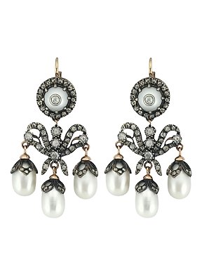 Fabergé - Ohrringe - 14 kt Gelbgold, Paar natürliche Perlen- und Diamantohrringe, Ende des 19. Jahrhunderts.