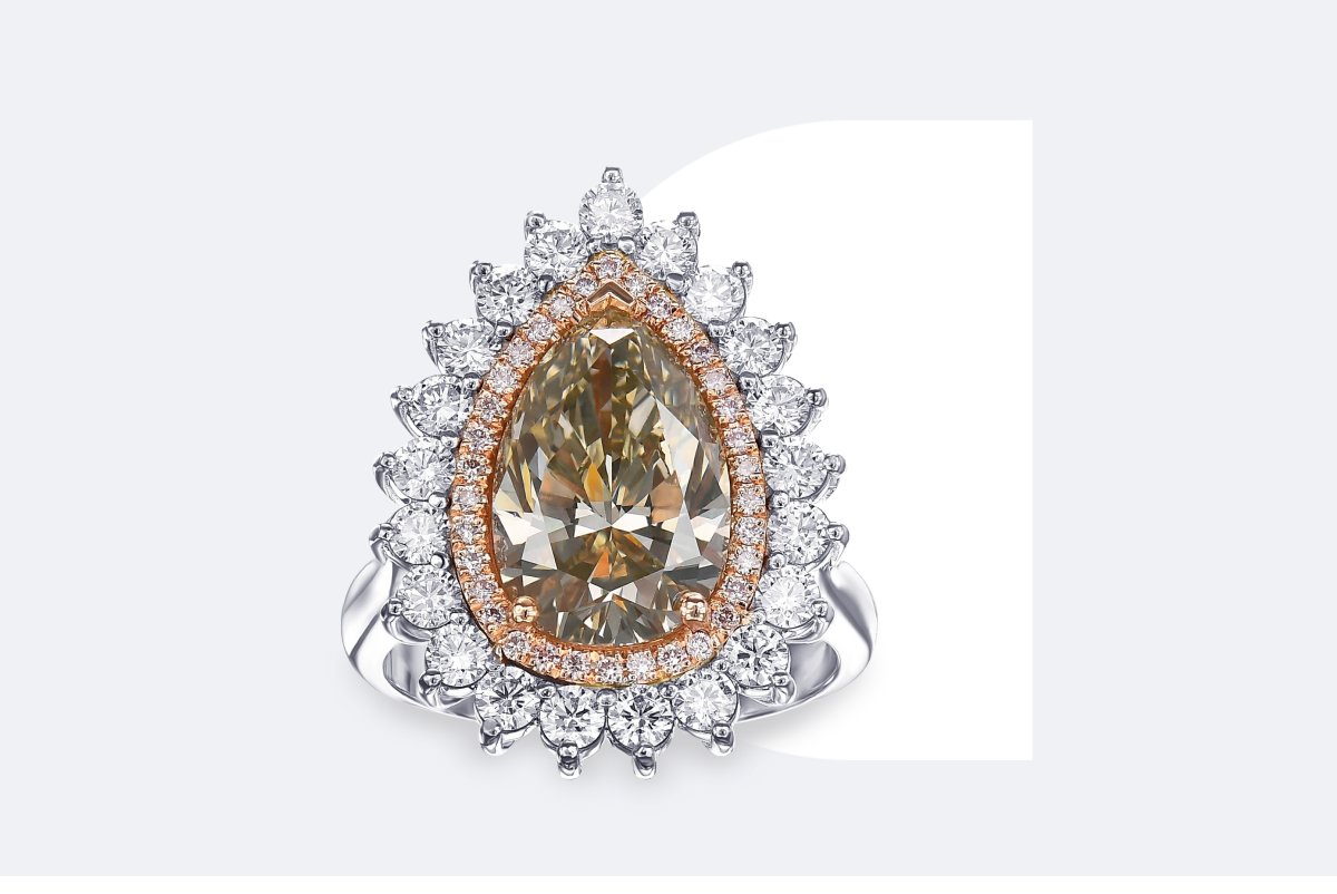 NO RESERVE - 5.69 CTW VS Fancy Pear Diamond Halo Pink Diamonds - 18 kraat Hvidguld, Pink guld - RingSolgt for€7,556