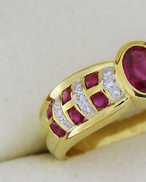 Ingen mindstepris - Ring - 9 kt. Rosaguld, Sølv Rubin - Diamant