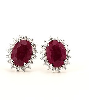 Ingen mindstepris - Øreringe - 9 kt. Gulguld, Sølv Rubin - Diamant