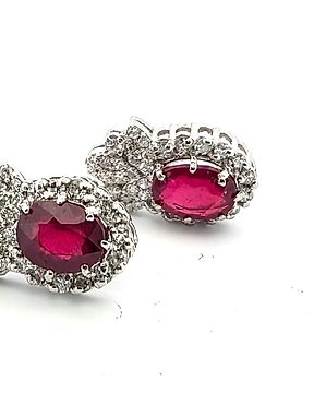 Øreringe - 18 kraat Hvidguld Rubin - Diamant