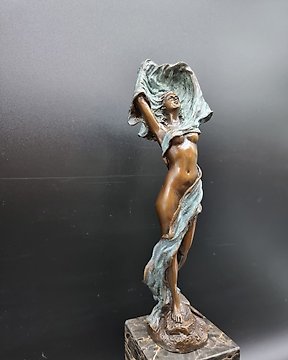 Naar Mayer - Skulptur, Fraai Sculptuur van Vrouwe Justitia beeld op marmeren voet - 24 cm - Bronze, Marmor - 2010