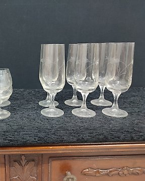 Drikkesæt til 6 (12) - Glas - Bøhmisk krystal graveret.