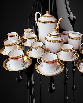 Gustavsberg - Tekop sæt til 10 (10) - Bamboo White - Porcelæn - Karin Björquist