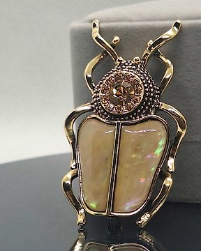 Brosche - 18 kt Gelbgold, Platin - 4.21ct. tw. Onyx - Diamant