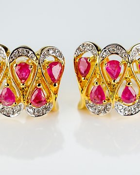 Ohne Mindestpreis - Ohrringe - 9 Kt Silber, Roségold Rubin