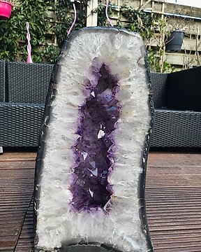 Amethyste mit Einschlüssen von Hämatitnadeln. Kristalle auf Muttergestein - Höhe: 10 cm - Breite: 11.8 cm- 589 g - (1)