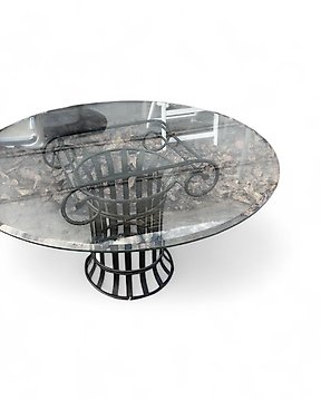 Couchtisch - Glas, Gold, Metall - Gebinde aus Weizen, im Stil des Tisches 'Coco Chanel'.