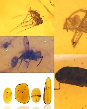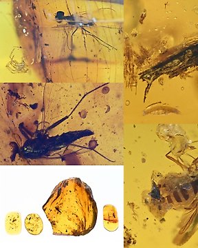 Burmesischer Bernstein (Burmit) - Fossiles Cabochon - Lot of 5 pieces, all with Detailed Hymenoptera (Wasp) fossil insect inclusions (Ohne mindestpreis)