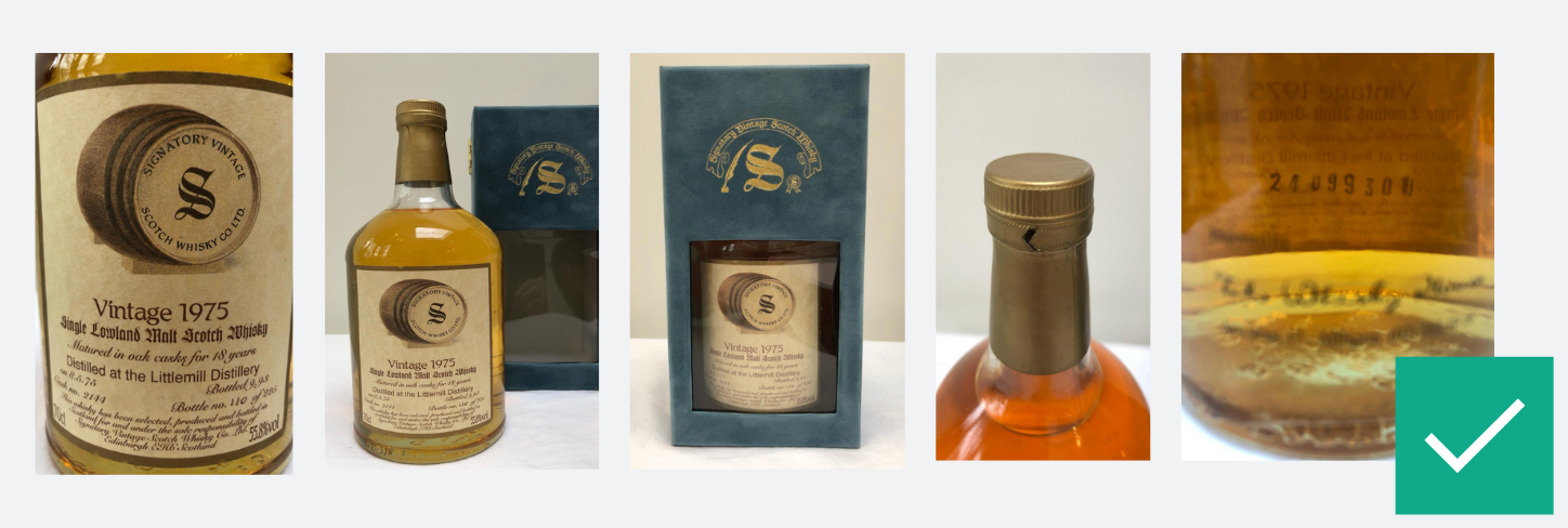- Επίπεδο πλήρωσης: αν το επίπεδο πλήρωσης δεν φαίνεται καθαρά στη φωτογραφία, ζυγίστε το μπουκάλι και συμπεριλάβετε το βάρος + προσθέστε φωτογραφία