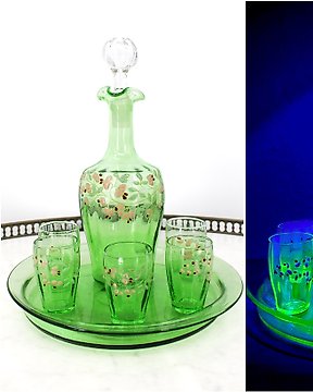 Servizio da digestivo Art Nouveau, anno 1930, nello stile di Legras. - Σετ ποτού - Γυαλί ουρανίου