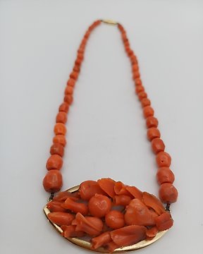 Κολιέ - 18 καράτια Κίτρινο χρυσό Κοράλλι αίματος - Κοράλλι αίματος - Πολύτιμη και Σπάνια Κολιέ