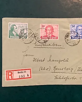 Βερολίνο 1949 - Σειρά Goethe για πραγματικό καταχωρημένο πλέξιμο από το Βερολίνο στο Bensberg - Michel 61/63