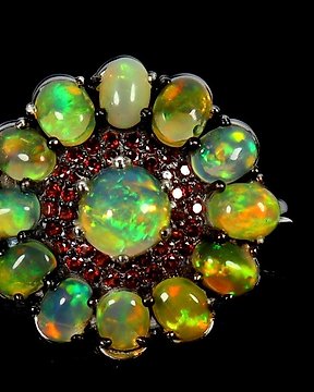 Καρφίτσα Βικτωριακή καρφίτσα με όπλες και μαύρη σμάλτο σε χρυσό 9 καρατίων. Οπάλιο