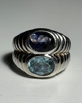 Bvlgari - Δαχτυλίδι - Bvlgari Bvlgari - 18 καράτια Λευκός χρυσός Τοπάζιο - Ιολίτης - Διπλό δαχτυλίδι Bvlgari