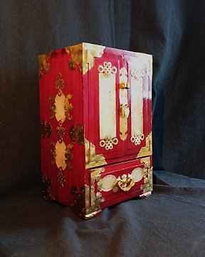 Handvervaardigd - Κουτί κοσμημάτων - Όμορφο κινέζικο ξύλινο κουτί κοσμημάτων με 4 συρτάρια και μπρούτζινα εξαρτήματα. - Ξύλο, Ορείχαλκος, Jade Satijn - Κουτί κοσμημάτων