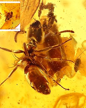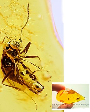 Φτερά δεινοσαύρων σε διάφανο κεχριμπάρι. - Κεχριμπάρι - 20 mm - 12 mm