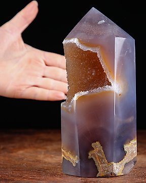 Ειδική Γαλάζια Γαλήνη Υπέροχος Αγκάτη Οβελίσκος - Λαμπερή Καφέ Καλσιτης Κρυστάλλωση - Αποκλειστικό Μοντέλο Μεταλλεύματος - Ύψος: 194 mm - Πλάτος: 88 mm- 1573 g