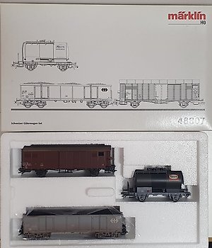 Fleischmann H0 - 97 5808K - Σετ τρένου μοντελισμού μεταφοράς εμπορευμάτων (1) - 4-αξονες containerdraagwagens τύπου Sgns με 40 πόδια containers 'Geest' και 'MSC'. - DB, SBB-CFF