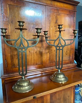 Μανουάλι Διπλής όψης ασημένιο κηροπήγιο Sheffield / διπλό μπρούντζινο κηροπήγιο. (3) - Επάργυρο, Ορείχαλκος
