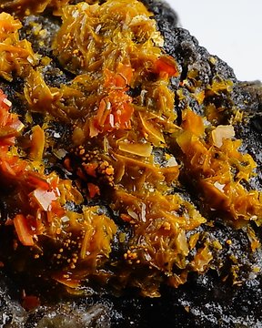 Ζωντανά πορτοκαλί κρύσταλλα WULFENITE πάνω σε μήτρα. πολύ αισθητικό δείγμα σε μεγάλο μέγεθος - φθορίζον - Ύψος: 6.5 mm - Πλάτος: 6.5 mm- 196 g