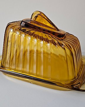 Royal Leerdam - Πιάτο βουτύρου (2) - Kaasstolp - Schaal - Amber - Γυαλί