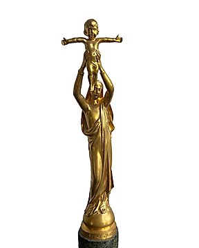 H. Fugère (1872–1944). - Άγαλμα, Grote Art Deco-lamp met twee danseressen - 47 cm - Πατιναρισμένος μπρούτζος - 1920