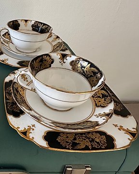 R. H. & S. L. , Staffordshire - Σετ φλιτζανιών τσαγιού για 4 (12) - Tuscan China - Πορσελάνη - Κομψό & Σπάνιο