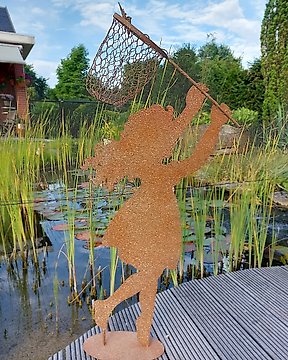 Άγαλμα, garden statue silhouette of girl with butterfly net - 69 cm - Χάλυβας