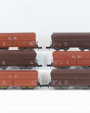 Minitrix N - 13509/13569 - Τρένο μοντελισμού μεταφοράς εμπορευμάτων (6) - 6x 4-θέσιοι Onderlossers/Schotterwagens - DB