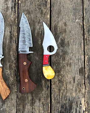 Kitchen knife - Prestigious Handmade Skinners Knives, Forged Steel, Stag Horn, Wood & Rare Handle - North America - Leather Sheath TD5