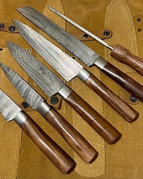 Kitchen knife - Kicthen Chef Knives set Purpose Daily Uses in Indoor and Outdoor (UZ-280) - American Exotic Wood Handle and folded Steel Blade - North America - Kitchen and BBQ Set