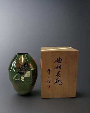 Japanese Vermilion Cast Bronze Vase “Sagi Musume” by Keiko Aizawa with Signed Box - Cast bronze with vermilion-brown lacquer finish - Aizawa Keiko - Japan - Showa Period (1926–1989) — Late Showa (circa 1970s–1980s)