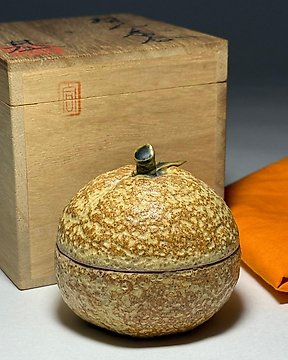 Kasama-yaki “Mikan” Incense Container by Motoyoshi Toneda – With Original Box – Unused - Japan - 21st century