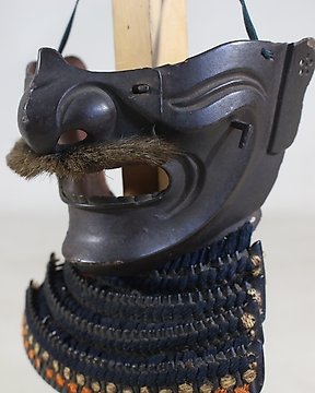 Mengu/Menpo - Japan - Sabinuri Menpo w/Kiritsuke Kozane Mendare, Samurai Yoroi : E3-16 Edo Period (1600-1868)