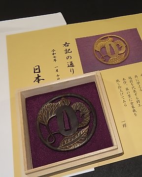 Katana - Forged Iron - Hatomaru Pigeon Tsuba by Armor maker : C5-349 - Japan - Edo Period (1600-1868)