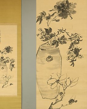 Free shippingSuiboku Ink Gyokudō Fuki” (Noble Vase with Flowers) with Box - Tsubaki Chinzan 椿椿山 (1801-1854) - Japan - Late Edo period (No reserve price)