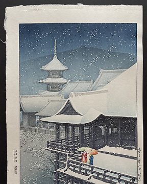 "Haru no Yuki (Kyo no Kiyomizu)" (Spring Snow at Kiyomizu Temple in Kyoto) - Kawase Hasui 川瀬巴水 (1883-1957) - Japan (No Reserve Price)