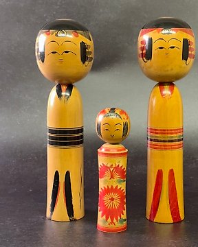 Set of 3 Traditional Japanese Kokeshi Dolls – Shiroishi & Naruko Style – Signed by Heisaburo and - Heisaburo - 20th century
