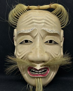 Noh mask - Wood, wooden sculptured wooden Noh mask - Asakurajō朝倉尉 artist : 喆山 - Asakurajō朝倉尉 (No Reserve Price)