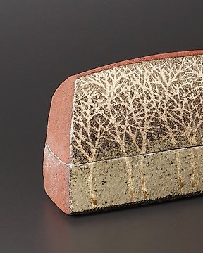 Bizen Hidasuki Wide-Mouth Flower Vase - Striking Red Linear Patterns - Stoneware - 山下譲治 Yamashita Joji (1947-) - Japan - 1900-2000
