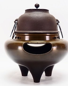 Shinnari-gama Tea Kettle with Karakane Brazier Set - Iron (cast/wrought) - 般若勘渓 Hannya Kankei (1933-2022)・菊地政光 Kikuchi Masamitsu (1937-) - Japan - 1900-2000