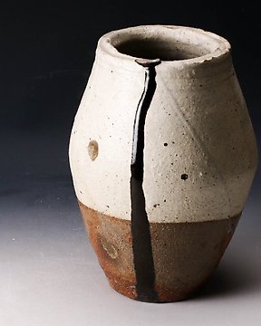 Tanba Mizusashi - Faceted Fresh Water Container with Ash Glaze - Stoneware - 西端正 Nishihata Tadashi (1948-) - Japan - 1900-2000