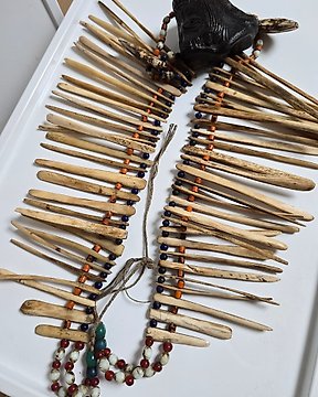 1950 set of tiny feather decorations in a pouch of natural fiber - star mountains - highlands - west Papua (No reserve price)
