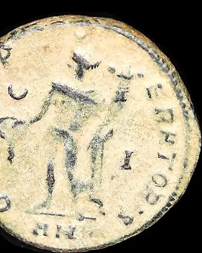 Roman Empire. Constantine I (AD 306-337). Follis Lugdunum mint, struck A.D. 314-315. SOLI INVICTO COMITI, Sol standing left. PLG in exergue. (No reserve price)