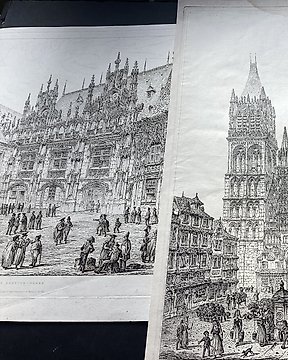 France - Rouen; John Coney (1786-1833) - Palais de Justice Rouen & Cathedral Rouen - West Front (2) - 1821-1850