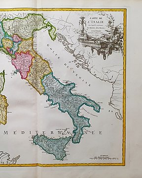 Europe - Italy / Sicily / Sardinia / Lombardy / Campania / Puglia; Robert de Vaugondy - Carte de l'Italie , 1758 - 1751-1760