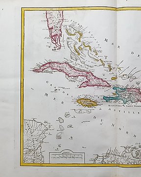 America Centrale - Caribbean / Mexico / Florida / Cuba / Jamaica / West Indies / Antilles; Robert de Vaugondy - Partie de la Mer du Nord: Les Grandes et Petites Isles Antilles et les Isles Lucayes - 1751-1760