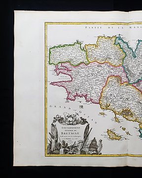 Europe - France / Brittany / Brest / Rennes / Saint-Malo / Vannes / Carnac; Robert de Vaugondy - Gouvernement General de Bretagne......, 1758 - 1751-1760