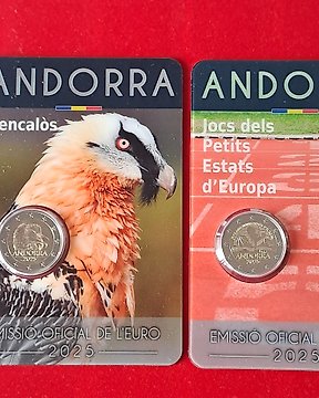 Andorra. 2 Euro 2025 "Bearded" + "Small States Games" (2 coincards) (No reserve price)